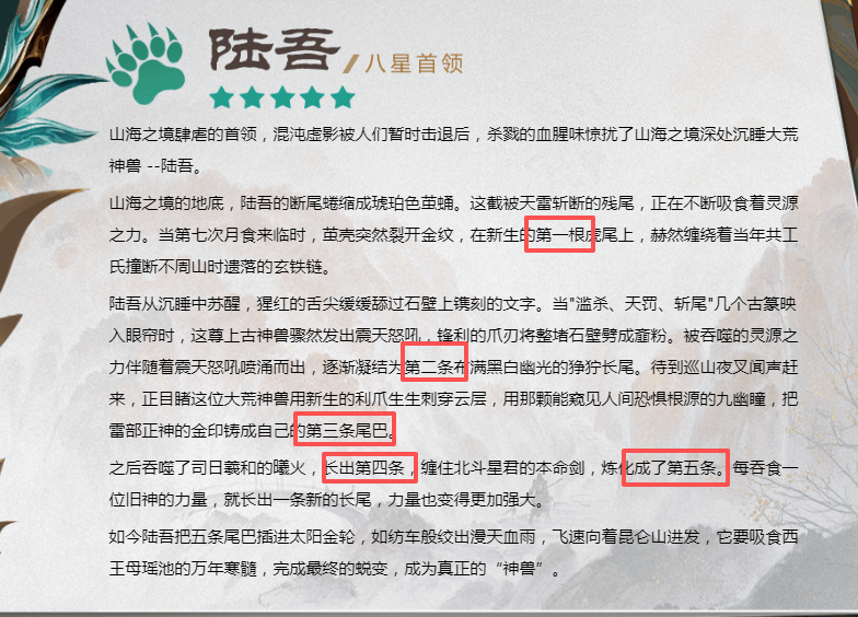 “山海大荒|陆吾虎尾之谜,全服竞猜赢豪礼!”活动已经结束,感谢小伙伴们的热情参与。8星至尊BOSS「陆吾」已降临昆仑之墟!,引发了小伙伴们的好奇心,又或是重金奖项让小伙伴们争相参与。但是,说实话,真正同时猜对三个答案的小伙伴并不多哦,正确答案是什么呢?很多小伙伴可能被活动前言的“虎身而九尾”给迷惑了,这烟雾弹放得真是妥妥的!其实楼主有提示过啦!“更多详情点击专题页”!!!惊不惊喜意不意外?!是的!答案就在专题页中!!!正确答案就是: