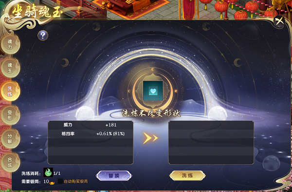 最后总结一下,魂玉系统所涉及材料:缰绳、魂玉碎片、洗炼玉、变形玉。基本上目前在【祀荒平妖录】斩妖可以获得,所以宝子们每天都加油去斩吧!