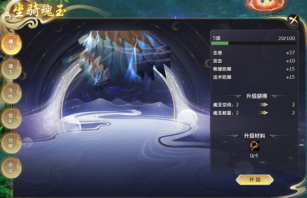 在魂力这个版块,我们可以通过消耗缰绳升级魂力,魂力等级提升后,会提升基础属性和魂玉空间,魂玉空间扩大后才能放置更多的魂玉。