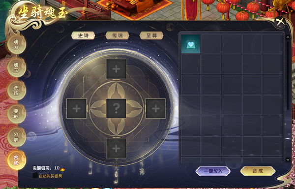 2、魂玉品质品质分为:精良、史诗、传说、至尊。精良魂玉可以用20个魂玉碎片合成。
